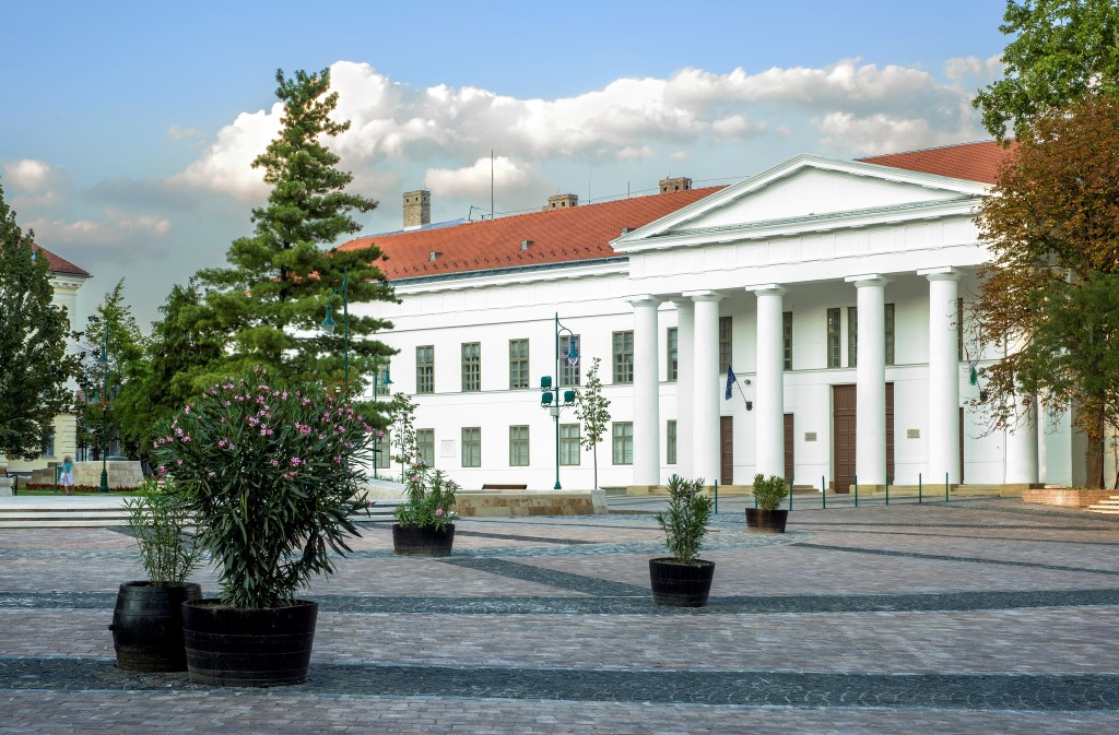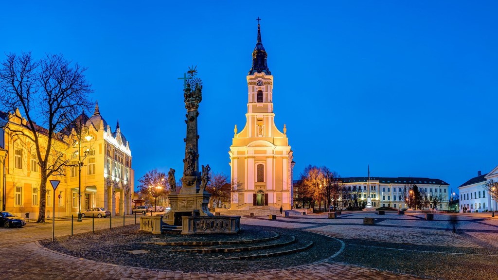 A város szíve a Béla tér, mely kiindulópontunk lehet sétánk során. A teret az 1805-ben épült copf stílusú templom őrzi, melynek nevezetessége, hogy Közép-Európa legnagyobb egyhajós temploma. Naponta háromszor harangjáték hallható. Szemben a pestisjárvány szomorú emlékét őrző Szentháromság-szobor, körülötte autóforgalom hullámzik. A teret a Városháza épülete nyugatról, a régi Vármegyeháza keletről zárja le.